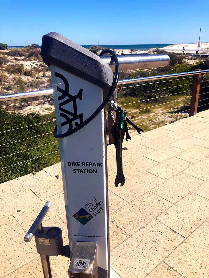 One thing surprised me – along many of the paths of the beachfront were bicycle repair stations. What a good idea. If your tyres look a bit flat there’s a pump and connector to pump it up.