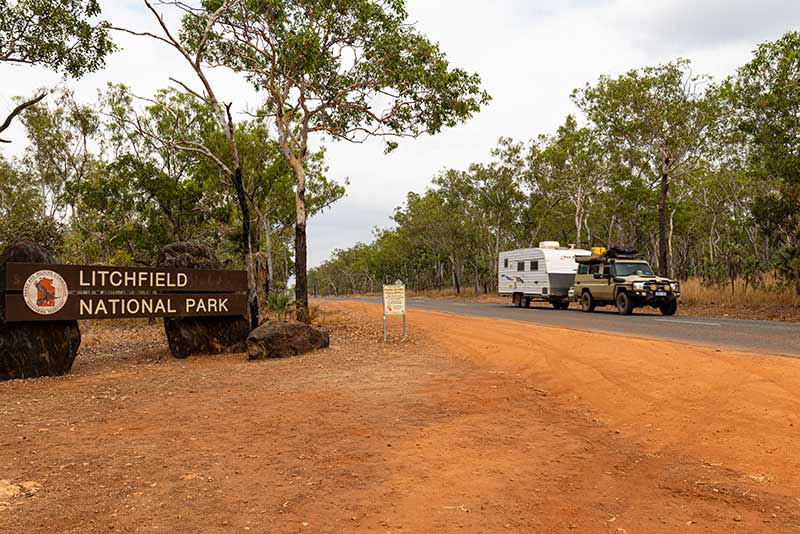 Litchfield National Park is about 120km south of Darwin, with sealed access via the Stuart and Batchelor roads, making it an easy drive for caravans and RVs.