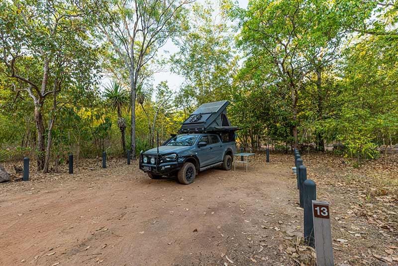 Florence Falls is another Litchfield icon, and while the main campground can get busy, the 2WD-accessible section offers a more laid-back experience. It’s just a short drive off the main loop road, and the sites here are spread out, with plenty of space for caravans, motorhomes, camper trailers, rooftop tents or swags under the stars.