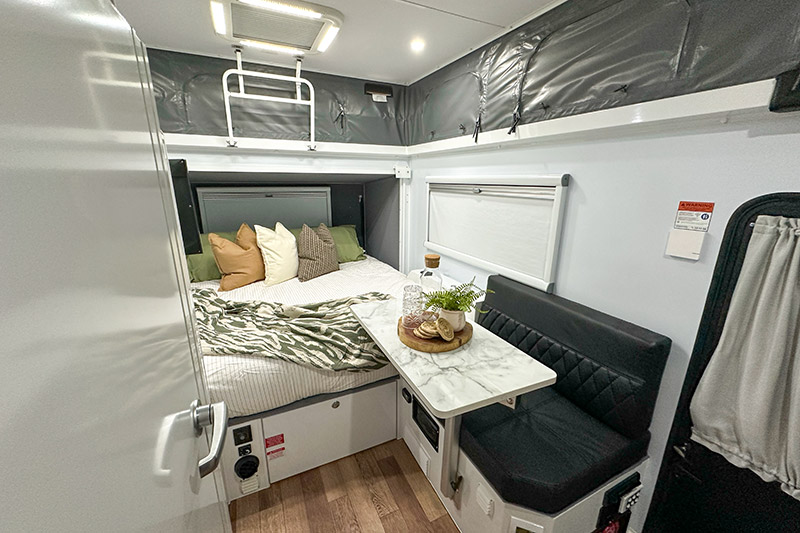 At just 11ft, the Forbes 11 is compact and SUV-friendly, with a Tare weight of about 1950kg and ATM of 2500kg. It comes with a hot-dipped-galvanised chassis, X-TRACK independent trailing arm suspension, and offroad mud terrain tyres, so it’s ready for the backroads straight from the factory.