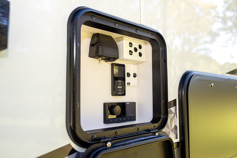 Entertainment: Flatscreen TV; Fusion sound system with speakers inside and out