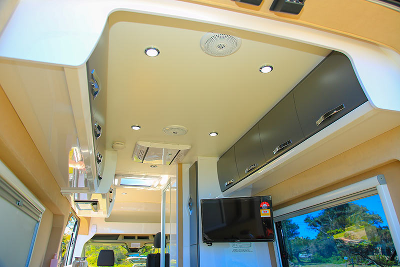 As mentioned, there are three layouts from which to choose in the 22ft SRV range. Layouts 1 and 2 are almost identical, with only some minor differences to the shape of the kitchen bench and the spec list. However, Layout 3 is quite different, and even includes a bed that lowers from the roof over the dinette! This, in my opinion, would be an intriguing option. After all, the B class style of RV typically requires you to make-up the dinette/lounge area into a bed. Imagine just pushing a button and having your bed lower electrically from the roof, above the rear lounge. It would be a game-changer in terms of your daily living.